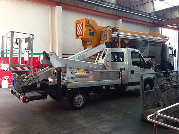 Piattaforme aeree compatte: sono adatte ad operare in zone con ridotta possibilità di parcheggio (altezza massima 13,5 metri).